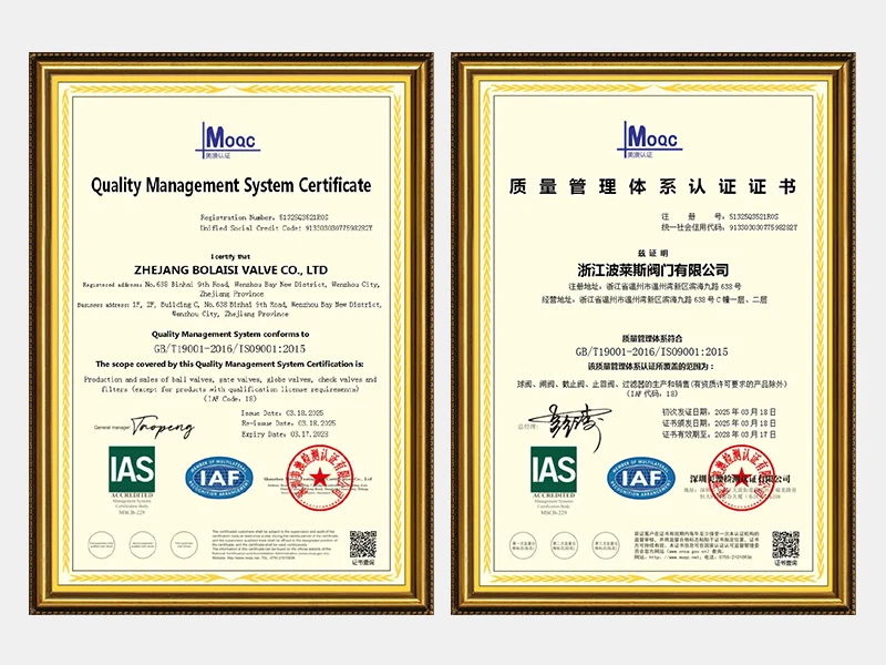 A Zhejiang Bolaisi Valve Co., Ltd. több mint 20 éve foglalkozik a szelepiparral. A céget hivatalosan 2013-ban jegyezték be és alapították. Több mint tíz éves fejlesztés után a Bolaisi Valve üzleti igényei folyamatosan nőnek. A növekvő igények kielégítésére a vállalat 2025-ben import- és exportkereskedelmi vállalatot hozott létre. A cég fő termékei között szerepeltolózárs, gömbszelepek, visszacsapó szelepek, golyóscsapok, pillangószelepekés szűrőket. Fejlődése során a vállalat erős támogatást kapott a társadalom minden szektorától és ügyfeleitől. A jövő kihívásaival szemben a vállalat egy vadonatúj üzleti filozófiát követ, gondosan ápolja az egyedi vállalati kultúrát, és arra törekszik, hogy hazai és nemzetközi ügyfelek számára praktikusabb megoldásokat, jobb hírnevet, magasabb minőségű termékeket és átfogóbb szolgáltatásokat nyújtson. Mindig ragaszkodunk a "határok nélküli kiválóságra" és a "mindent az ügyfélért" üzleti alapelvekhez. Őszintén üdvözöljük az új és régi hazai és külföldi vásárlókat, hogy látogassák meg cégünket útmutatásért és együttműködésért a "kiváló minőség és elfogadható ár, kiegészítő előnyök és kölcsönös előnyök" elve alapján. A Bolaisi Valve kész kéz a kézben dolgozni veled, együtt fejlődni, és ragyogó jövőt teremteni!